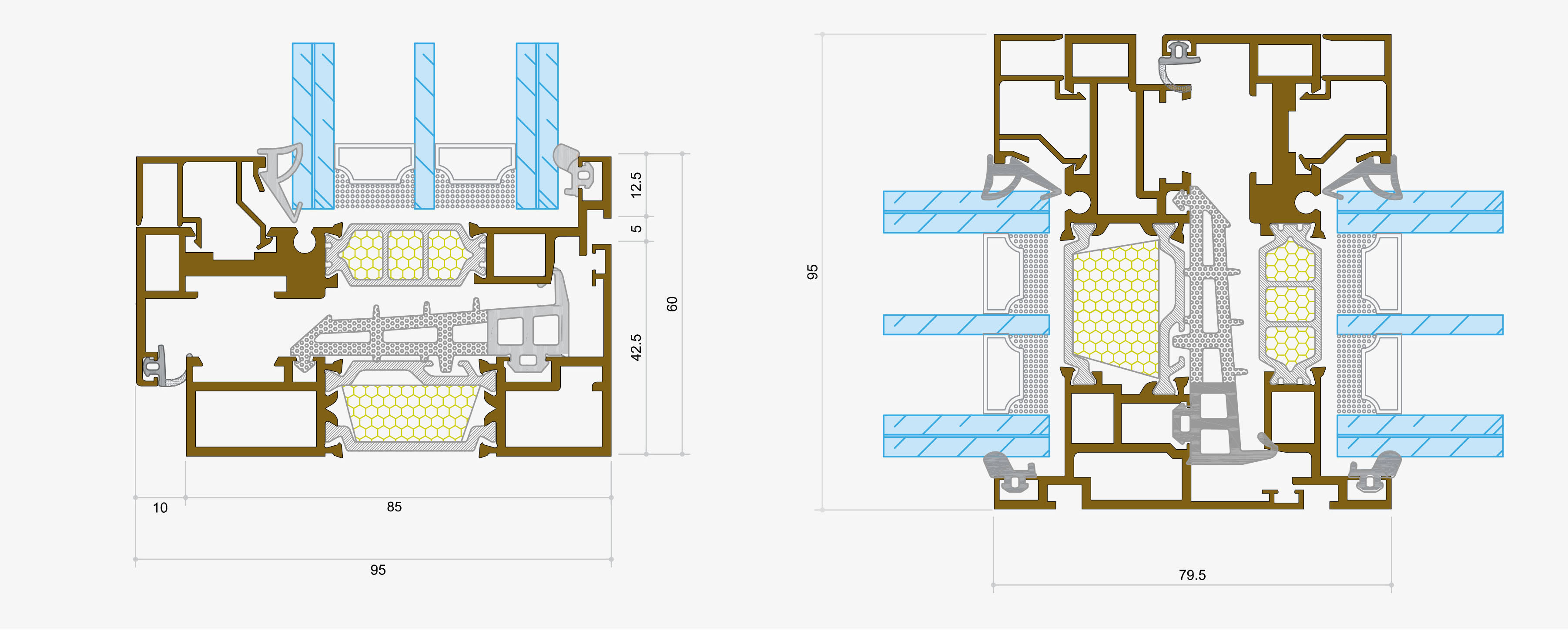 L’ampia gamma di profili, il vasto repertorio di accessori e finiture a marchio di qualità, consentono la realizzazione di varie le tipologie di serramenti, con finestre ad una, due o più ante, con laterali, sopraluce o sottoluce fissi od apribili, aperture a vasistas o scorrevoli a ribalta in parallelo in alluminio anche bicolore.