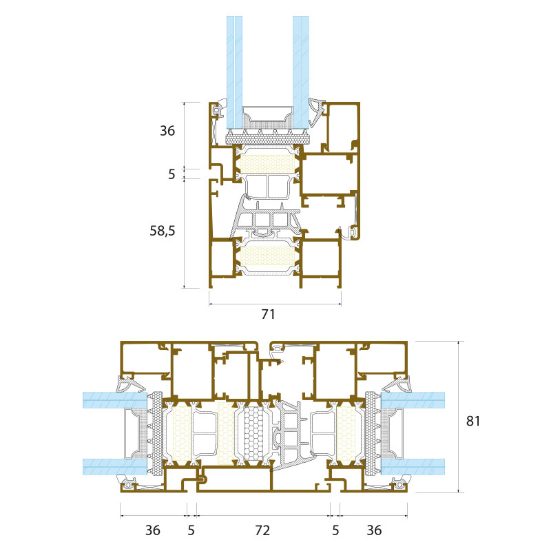 L’ampia gamma di profili, il vasto repertorio di accessori e finiture a marchio di qualità, consentono la realizzazione di varie le tipologie di serramenti, con finestre ad una, due o più ante, con laterali, sopraluce o sottoluce fissi od apribili, aperture a vasistas o scorrevoli a ribalta in parallelo in alluminio anche bicolore.
